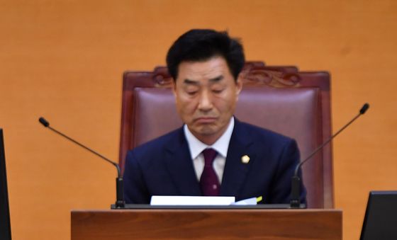 민주당의원들은 "이번 의장 선거는 다수당인 국민의힘 내부경선으로 미리 정해놓은 후보를 당선시키기 위한 것"이라며 "자율경선을 실시할 것"을 촉구했다.