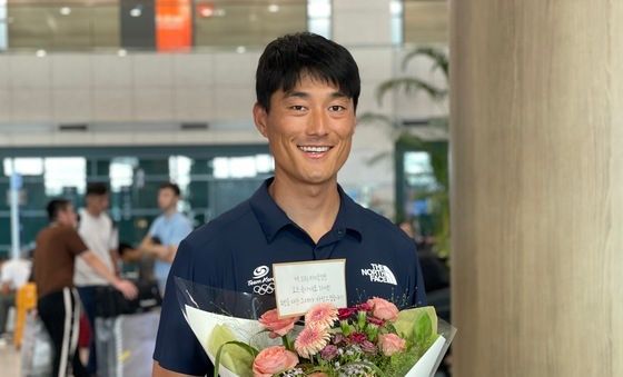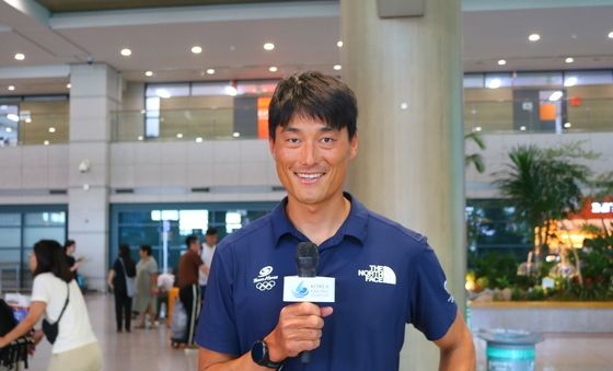 (인천공항=뉴스1) 신웅수 기자 = 파리 올림픽에 출전하는 대한민국 요트 대표팀 하지민이 13일 오전 인천국제공항 1터미널을 통해 출국하며 파이팅을 외치고 있다.