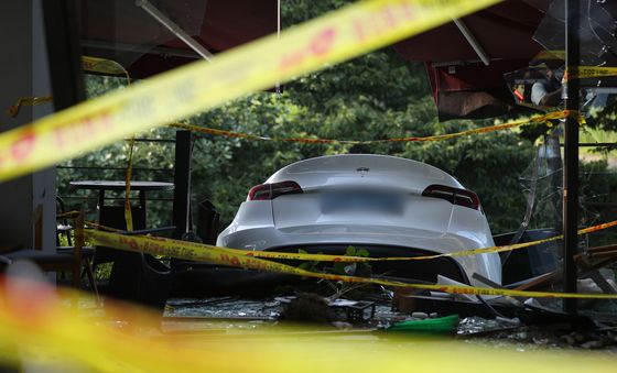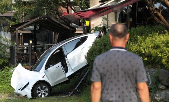 60대 운전자가 몰던 전기차 카페로 돌진…10여명 부상