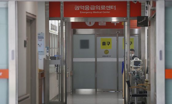 (수원=뉴스1) 김영운 기자 = 4일 경기 수원시 영통구 아주대학교병원 응급실 앞에 매주 목요일 응급실 제한 운영을 알리는 안내문이 붙어있다.
