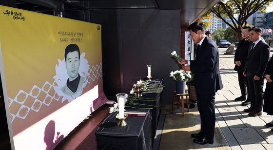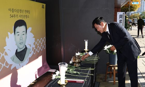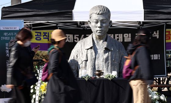 (서울=뉴스1) 구윤성 기자 = 전태일 열사의 54주기인 13일 오전 서울 종로구 전태일기념관에 마련된 시민분향소를 찾아 한 시민이 참배하고 있다. 2024.11.13/뉴스1kysplanet@news1.kr관련 키워드전태일근로기준법구윤성 기자 12월 소비자물가 2.3% 상승…고환율에 석유류 '껑충'고환율에 석유류 급등고환율에 석유류 가격 6% 급등