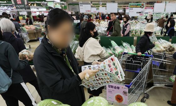 양배추는 지난해 3월 평균 가격이 4095원이었는데 1년 만에 절반이 뛰어 2천원가량 비싸졌다.사진은 이날 서울 시내의 한 대형마트에서 진열된 양배추. 2025.3.23/뉴스1