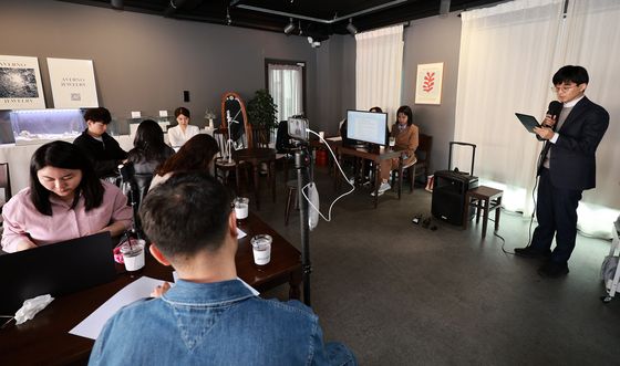 (서울=뉴스1) 김진환 기자 = '서부지법 난동 사태' 가담자 측 권우현 변호사가 24일 오후 서울 마포구 어거스트21에서 기자회견을 하고 있다.