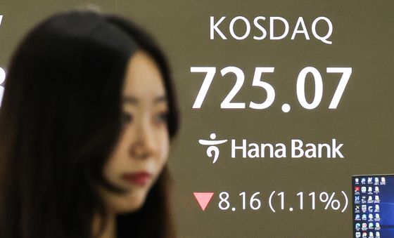 (서울=뉴스1) 박지혜 기자 = 7일 서울 중구 하나은행 딜링룸 전광판에 종가 현황이 표시돼 있다.