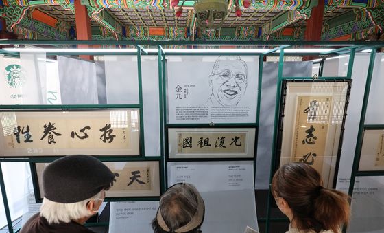 이번 전시에서는 광복 80주년을 기념해 스타벅스가 2015년부터 국가유산청, 문화유산국민신탁에 기증한 백범 김구, 도산 안창호, 만해 한용운, 위창 오세창 등 독립운동가들의 친필 휘호 11점의 영인본(복사본)이 소개된다. 2025.4.8/뉴스1