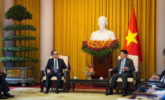 (서울=뉴스1) 임세영 기자 = 베트남을 공식 방문 중인 조태열 외교부 장관이 16일 베트남 하노이에서 르엉 끄엉 베트남 국가주석을 예방하고 있다. (외교부 제공, 재판매 및 DB 금지) 2025.4.16/뉴스1seiyu@news1.kr관련 키워드조태열외교부장관르엉끄엉베트남주석관련 사진르엉 끄엉 베트남 국가주석 예방하는 조태열 장관조태열 장관, 르엉 끄엉 베트남 국가주석 예방임세영 기자 인사말하는 김종철 방미통 위원장국무회의 주재하는 김민석 총리발언하는 김민석 총리