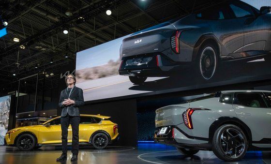 사진은 '2025 뉴욕 국제 오토쇼'에서 에릭 왓슨 기아 미국법인 영업담당이 발표하는 모습. (기아 제공. 재판매 및 DB 금지) 2025.4.17/뉴스1