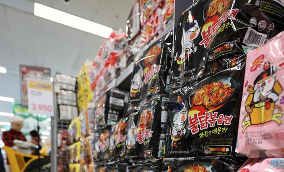 (서울=뉴스1) 김도우 기자 = 삼양식품의 올해 1분기 연결 기준 매출액 4863억 원, 영업이익 1024억 원을 기록할 것으로 전망된다.사진은 22일 서울 시내 한 대형마트에 진열된 삼양식품의 불닭볶음면. 2025.4.22/뉴스1pizza@news1.kr관련 키워드불닭볶음면삼양식품관련 사진김민석 총리, 불닭볶음면 시식삼양식품 제품 살펴보는 김민석 총리장관들과 불닭볶음면 시식하는 김민석 총리김도우 기자 서울 시내버스 총파업 예고 D-1, 사측 규탄하는 노조원들서울 시내버스 파업 예고 D-1, 사측 규탄하는 노조원들서울 시내버스운송사업조합 규탄