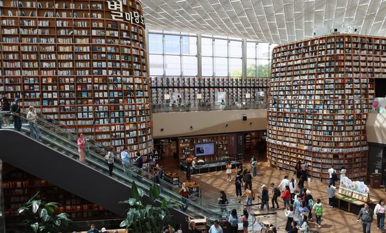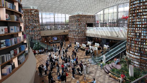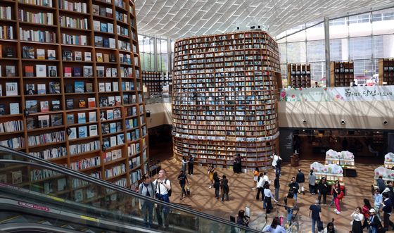 (서울=뉴스1) 김명섭 기자 = 세계 책의 날인 23일 서울 강남구 코엑스 별마당 도서관에서 국내외 관람객들이 책과 함께 사진촬영 등을 하며 즐거운 추억을 만들고 있다.