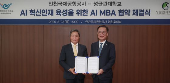 이학재 인천국제공항공사 사장이 24일 인천국제공항공사 삼목교차로에서 열린 합동안전점검 행사에서 해당 사업에 대한 브리핑을 받고 있다. (인천국제공항공사 제공. 재판매 및 DB 금지) 2025.4.24/뉴스1