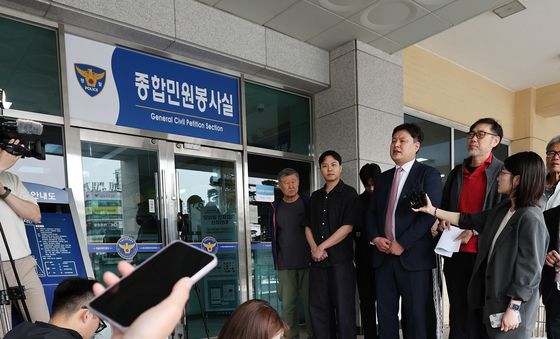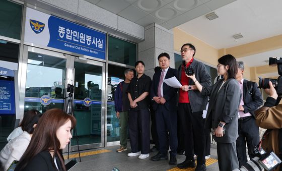 (서울=뉴스1) 이동해 기자 = 유영상 SK텔레콤 대표이사를 비롯한 임원들이 25일 서울 중구 SKT타워에서 고객 정보 보호조치 강화 설명회를 열고 SK텔레콤 이용자 유심(USIM) 정보 해킹에 대해 고개 숙여 사과하고 있다.