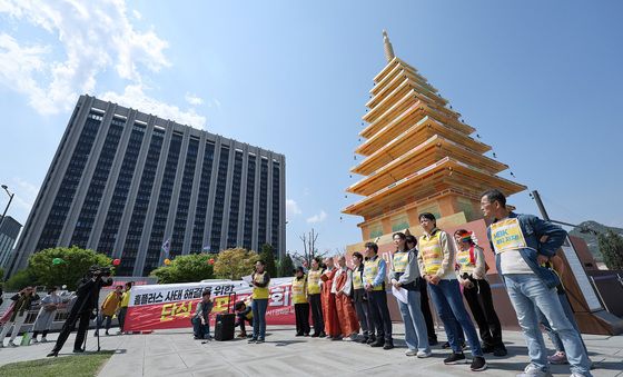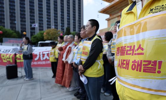 (서울=뉴스1) 김성진 기자 = 민주노총 서비스연맹 마트산업노동조합 회원들이 28일 서울 종로구 광화문광장에서 열린 홈플러스 사태 해결을 위한 단식 선포 기자회견에서 구호를 외치고 있다. 2025.4.28/뉴스1ssaji@news1.kr관련 키워드서비스연맹홈플러스MBK관련 사진MBK 홈플러스 사태 관련 면담하는 우원식 의장홈플러스 노동자들 만난 우원식 의장우원식 의장, MBK 사태 홈플러스노조 면담김성진 기자 검찰 권한 분산 본격화…공소청·중수청 법안 입법예고검찰 권한 분산 본격화…공소청·중수청 법안 입법예고검찰 권한 분산 본격화…공소청·중수청 법안 입법예고
