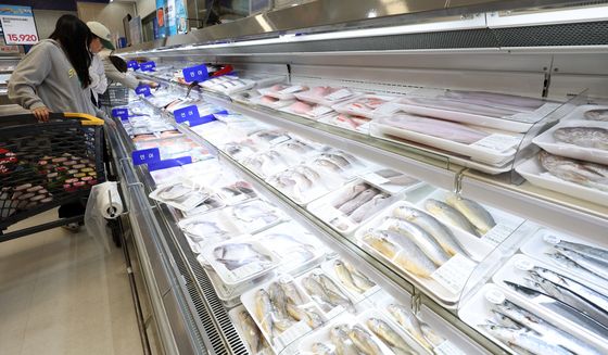 4월에는 가공식품과 외식, 축산물, 수산물 등 먹거리 가격이 고공행진을 했다. 축산물(4.8%)과 수산물(6.4%)은 큰 상승폭을 나타냈다. 사진은 이날 서울 한 마트에서 소비자들이 수산물을 고른는 모습. 2025.5.2/뉴스1