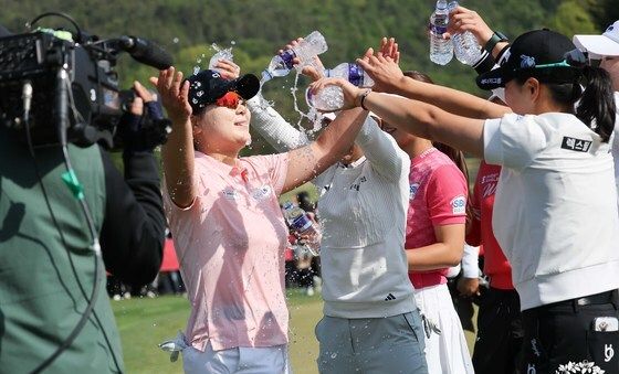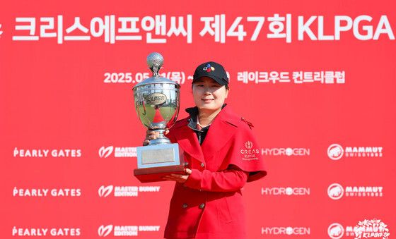(서울=뉴스1) 민경석 기자 = 4일 경기 양주 레이크우드CC에서 열린 '크리스에프앤씨 제47회 KLPGA 챔피언십' 파이널라운드에서 우승을 차지한 홍정민이 트로피를 들고 기념촬영을 하고 있다. (KLPGA 제공. 재판매 및 DB 금지) 2025.5.4/뉴스1newsmaker82@news1.kr관련 키워드홍정민KLPGA골프관련 사진시즌 3승 도전하는 홍정민티샷하는 홍정민홍정민, 짜릿한 우승의 맛