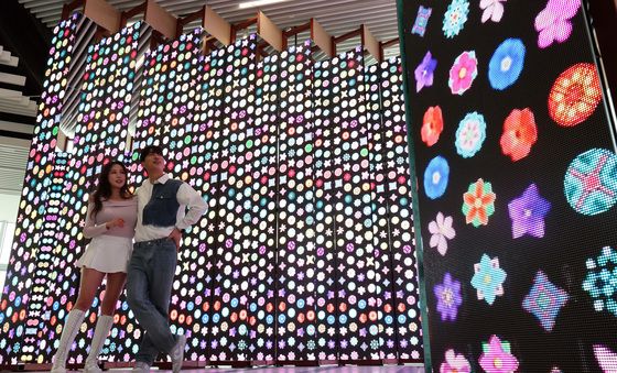(서울=뉴스1) 이동해 기자 = 7일 서울 종로구 도화서길 디원에서 열린 '2025 딜라이트 서울' 미디어아트 전시 언론공개 행사에서 모델들이 전시 작품을 소개하고 있다.