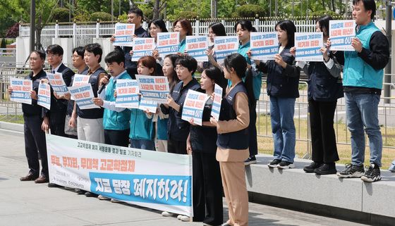 (서울=뉴스1) 임세영 기자 = 교사노동조합연맹, 전국교직원노동조합 관계자들이 8일 오전 서울 종로구 정부서울청사 앞에서 고교학점제 폐지 서명운동 결과 발표 기자회견을 하고 있다. 2025.5.8/뉴스1seiyu@news1.kr관련 키워드고교학점제폐지관련 사진'차별교육 확대 사교육 확신 고교확점제 폐지하라''고교학점제 OUT'고교학점제 폐지 서명운동 결과 발표 기자회견임세영 기자 김진향 의장, 남북경협 기관·단체, '남북관계 신뢰회복-평화복원' 기자회견통일부 기자실 찾은 남북경협기관·단체장남북경협 기관·단체, '남북관계 신뢰회복-평화복원' 기자회견