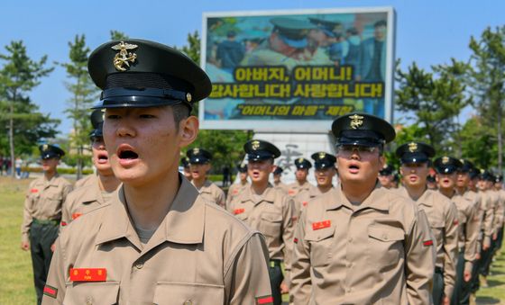 이날 부대는 어버이날을 맞아 특별히 부모님을 향한 신병들의 영상메시지 상영에 이어 '어머니의 마음'을 제창하게 해 부모님을 향한 신병들의 깊은 감사의 마음을 전했다. (해병대교육훈련단제공, 제판매 및 DB 금지) 2025.5.8/뉴스1