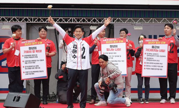 (서울=뉴스1) 김민지 기자 = 김문수 국민의힘 대통령 후보가 9일 오전 서울 여의도 선거사무소에서 북핵 억제력 강화 공약 발표를 하고 있다. 2025.5.9/뉴스1