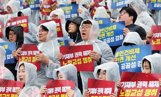공공부문 대선정책 요구 발표 기자회견하는 양대노총