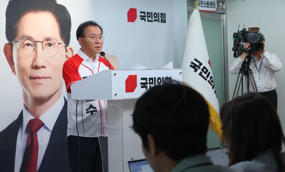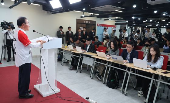 (서울=뉴스1) 장수영 기자 = 국민의힘으로부터 대통령선거 후보 자격이 취소된 김문수 후보가 10일 오전 서울 여의도에 마련된 대선 캠프 사무실에서 긴급기자회견을 하고 있다. 2025.5.10/뉴스1