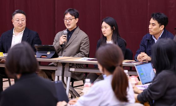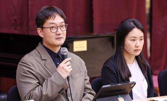 (서울=뉴스1) 민경석 기자 = 김덕희 서울시뮤지컬단 단장이 15일 오후 서울 종로구 세종문화회관에서 열린 뮤지컬 '더 퍼스트 그레잇 쇼' 라운드테이블 인터뷰에서 발언을 하고 있다.