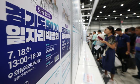 (수원=뉴스1) 김영운 기자 = 9일 오전 경기 수원시 권선구 수원메쎄에서 열린 '경기도 5070 일자리박람회'에서 구직자들이 채용게시판을 살펴보고 있다. 2025.7.9/뉴스1kkyu6103@news1.kr관련 키워드중장년일자리박람회수원메쎄관련 사진여당 대표의 정년 연장 가능성 발언에 일자리 박람회 몰린 중장년층일자리 박람회 몰린 중장년층정년 연장 가능성에 붐비는 일자리 박람회김영운 기자 경기도 평택 산란계 농장에 고병원성 AI 발생평택 산란계 농장서 고병원성 AI 발생…“올겨울 감염력 10배 강해”경기도 평택 산란계 농장에 고병원성 AI 발생
