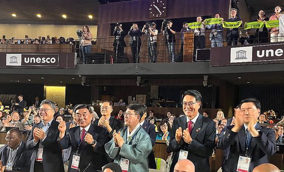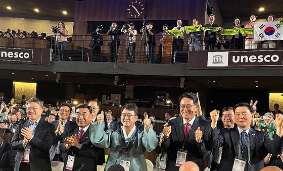 (서울=뉴스1) = 12일(한국시간) 제47차 유네스코 세계유산위원회에서 선사시대 생활문화를 엿볼 수 있는 바위그림인 '반구천의 암각화'를 세계유산 목록에 등재하기로 결정했다. '반구천의 암각화'는 국보로 지정된 '울주 천전리 명문과 암각화'와 '울주 대곡리 반구대 암각화'를 포함하는 유산으로 높이 약 4.5m, 너비 약 8m 암면에 바다동물과 육지동물 등 312점이 새겨져 있다.