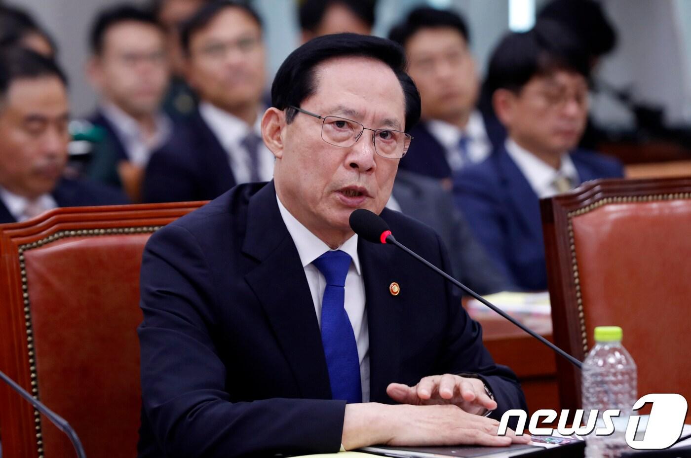 송영무 국방부 장관이 20일 오후 서울 여의도 국회에서 열린 법제사법위원회 전체회의에서 의원 질의에 답하고 있다. 2018.7.20/뉴스1 ⓒ News1 안은나 기자