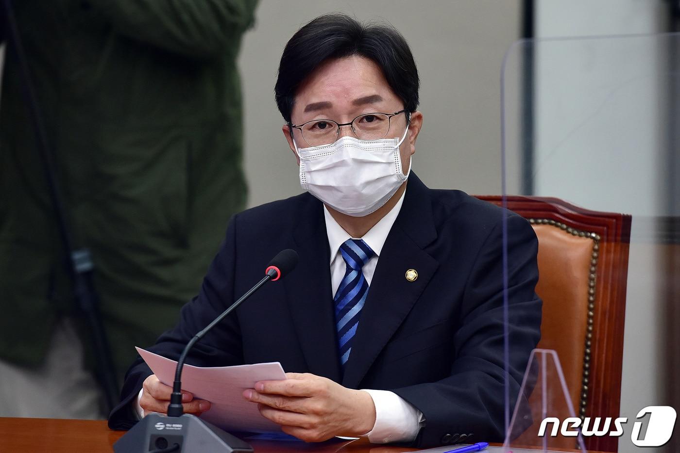 "권익위 결과 소명 듣고 발라냈으면 국민들 또 다시 '내로남불' 명명"권익위 조사 거부 국힘 향해 "조사 받는 순간 많은 의원 연루될 것"강병원 더불어민주당 최고위원이 3일 오전 국회에서 열린 첫 최고위원회의에서 발언을 하고 있다. 2021.5.3/뉴스1 ⓒ News1 이동해 기자