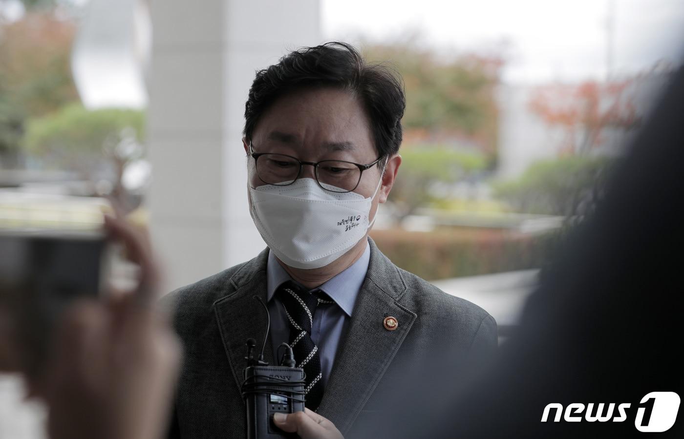 공수처장 "윤석열 관련 4개 사건 수사중…법과 원칙 따라 처리"박범계 법무부 장관이 29일 오전 울산 남구 울산지검을 방문해 취재진 질의에 답변하고 있다. 박 장관은 이날 산업안전보건법 위반 사건과 관련해 검찰, 고용노동부, 산업안전공단 등 실무자 간담회와 산업안전우수기업을 방문할 예정이다. 2021.10.29/뉴스1 ⓒ News1 이윤기 기자