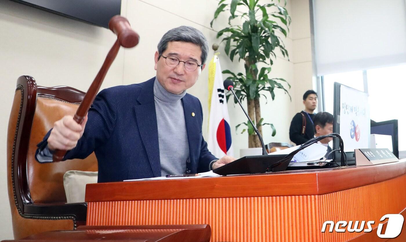 김학용 "구직활동 견인 본래 취지 살리도록 제도 개선해야"김학용 국회 환경노동위원회 위원장이 19일 서울 여의도 국회에서 열린 전체회의에서 의사봉을 두드리고 있다. 이날 위원들은 근로기준법 일부개정법률안 등을 의결했다. 2020.2.19/뉴스1 ⓒ News1 김명섭 기자박종홍 기자 삼성중공업, '코랄 노르트' 진수식…"매년 FLNG 1~2기 확보"글로벌 해운 운임 2주 연속 하락…SCFI, 1500선 하락