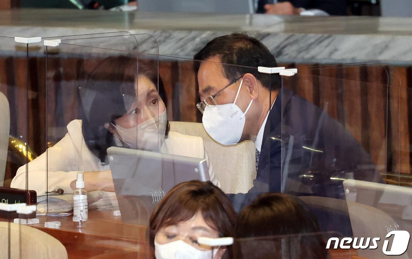 "우리가 국정 주도한단 생각으로 모든 현안 이끌어야"여소야대 상황·당내 반감·이준석 가처분 등 험로 예상주호영 국민의힘 원내대표가 19일 국회 본회의장에서 전주혜 의원과 대화하고 있다. (공동취재) 2022.9.19/뉴스1 ⓒ News1 허경 기자관련 키워드혼돈의국힘위기의이준석