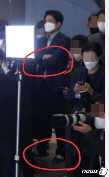 지난 18일 윤석열 대통령의 도어스테핑을 지켜보고 있는 MBC 기자. 김종혁 국민의힘 비대위원은 슬리퍼 차림에 팔짱을 끼고 있는 건 대통령이 아니라 일반 시민을 취재할 때도 예의가 아니라며 맹비난했다. (SNS 갈무리) ⓒ 뉴스1박태훈 선임기자 박선원 "총기위협 지시 尹, 고작 징역 5년?…정경심은 딸 표창장 한장에 4년"정성호 "필버 24시간 대기만 벌써 4번째, 신기록…노자 도덕경 읽으며 밤샘"