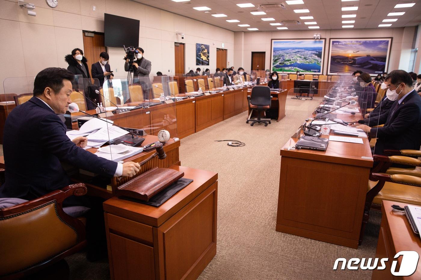 직회부 하면 2월7일 이후 가능최인호 국회 국토교통위원회 교통법안심사소위원장이 2일 서울 여의도 국회에서 열린 제400회 국회(정기회) 국토교통위원회 제3차 교통법안심사소위원회에서 의사봉을 두드리고 있다. 화물자동차 운수사업법 일부개정법률안 심사를 위해 열린 이날 회의에는 안전운임제 영구화 등을 요구하며 파업 중인 화물연대 측 관계자들이 출석했으나 국민의힘 위원들과 정부 측은 참석하지 않았다. 2022.12.2/뉴스1 ⓒ News1 유승관 기자김경민 기자 트럼프, 노벨평화상 들고 활짝…마차도 "결단력 기리며 증정"美, 내달 동맹국 외교장관 모아 '핵심광물 합의' 모색…"中의존 탈피"