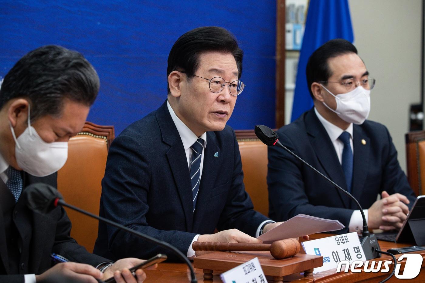 이재명 더불어민주당 대표가 25일 서울 여의도 국회에서 열린 최고위원회의에서 모두 발언을 하고 있다. 2023.1.25/뉴스1 ⓒ News1 유승관 기자