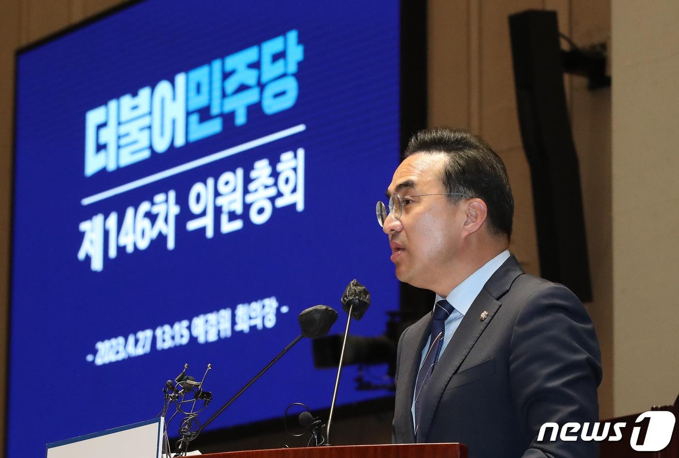 지선 참패 아쉬움 속 이재명표 예산 확보…李 "큰 포용력, 리더십" 박홍근 "민생 더 집중했어야"…민주, 의총 열고 새 원내대표 선출임기 만료를 하루 앞둔 박홍근 원내대표가 27일 서울 여의도 국회에서 열린 의원총회에서 발언을 하고 있다./뉴스1 ⓒ News1 임세영 기자이재명 더불어민주당 대표가 27일 서울 여의도 국회에서 열린 의원총회에서 임기 만료를 하루 앞둔 박홍근 원내대표와 악수를 나누고 있다./뉴스1 ⓒ News1 임세영 기자관련 키워드박홍근원내대표이재명쌍특검검수완박정재민 기자 대법, 장예찬 '여론조사 왜곡 공표' 유죄 취지 파기환송천대엽 "사법부 불신 깊이 사과…사법부, 개혁 대상 아닌 동반자로 참여"관련 기사판 커지는 6·3 국회의원 재보궐…10석 안팎 '미니 총선' 가능성이혜훈 갑질 논란…박홍근 "중도 하차 가능성"· 장철민 "본인이 결단을"박지원·박홍근 "선당후사"…김병기·강선우에게 탈당의 길 제시지방선거 뒤흔든 통일교발 '변수'…서울·부산 유력 후보군 '사정권'박홍근 "李 대통령, 정원오 칭찬…기초단체장 격려지만 부럽더라"