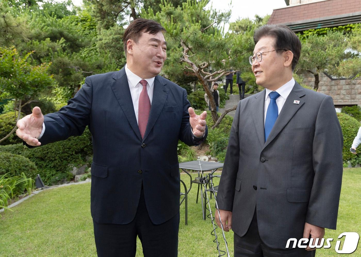 이재명 더불어민주당 대표가 8일 오후 서울 성북구 중국대사관저를 방문해 싱하이밍 주한중국대사와 관저를 둘러보며 대화를 나누고 있다. 2023.6.8/뉴스1 ⓒ News1 국회사진취재단