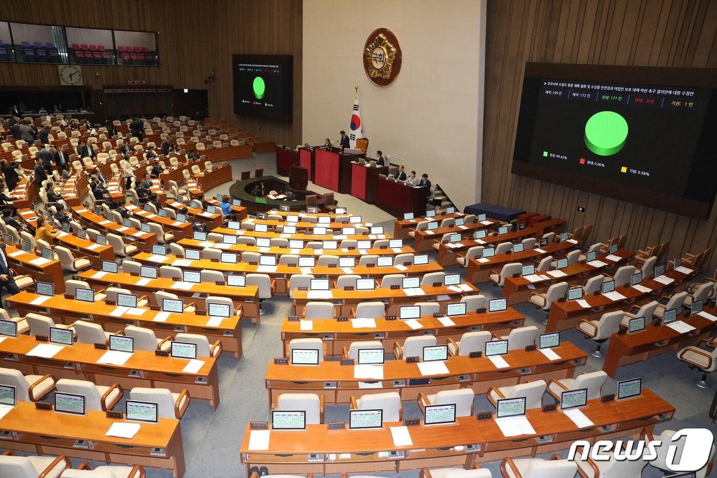 '사용중단' 마약류 양도승인 절차 폐지…조제 거부 근거 신설30일 오후 서울 여의도 국회에서 열린 제407회 국회(임시회) 제7차 본회의에서 '후쿠시마 오염수 방류 계획 철회 결의안'이 국민의힘 의원들이 불참한 채 통과되고 있다. 2023.6.30/뉴스1 ⓒ News1 송원영 기자관련 키워드본회의마약류 관리법마약류 관리에 관한 법률 일부개정법률안청소년마약신윤하 기자 구룡마을 화재 8시간 28분만에 '완진'…이재민 약 190명 발생(종합4보)구룡마을 화재 6시간 30분만에 '초진'…주민 258명 대피(종합3보)