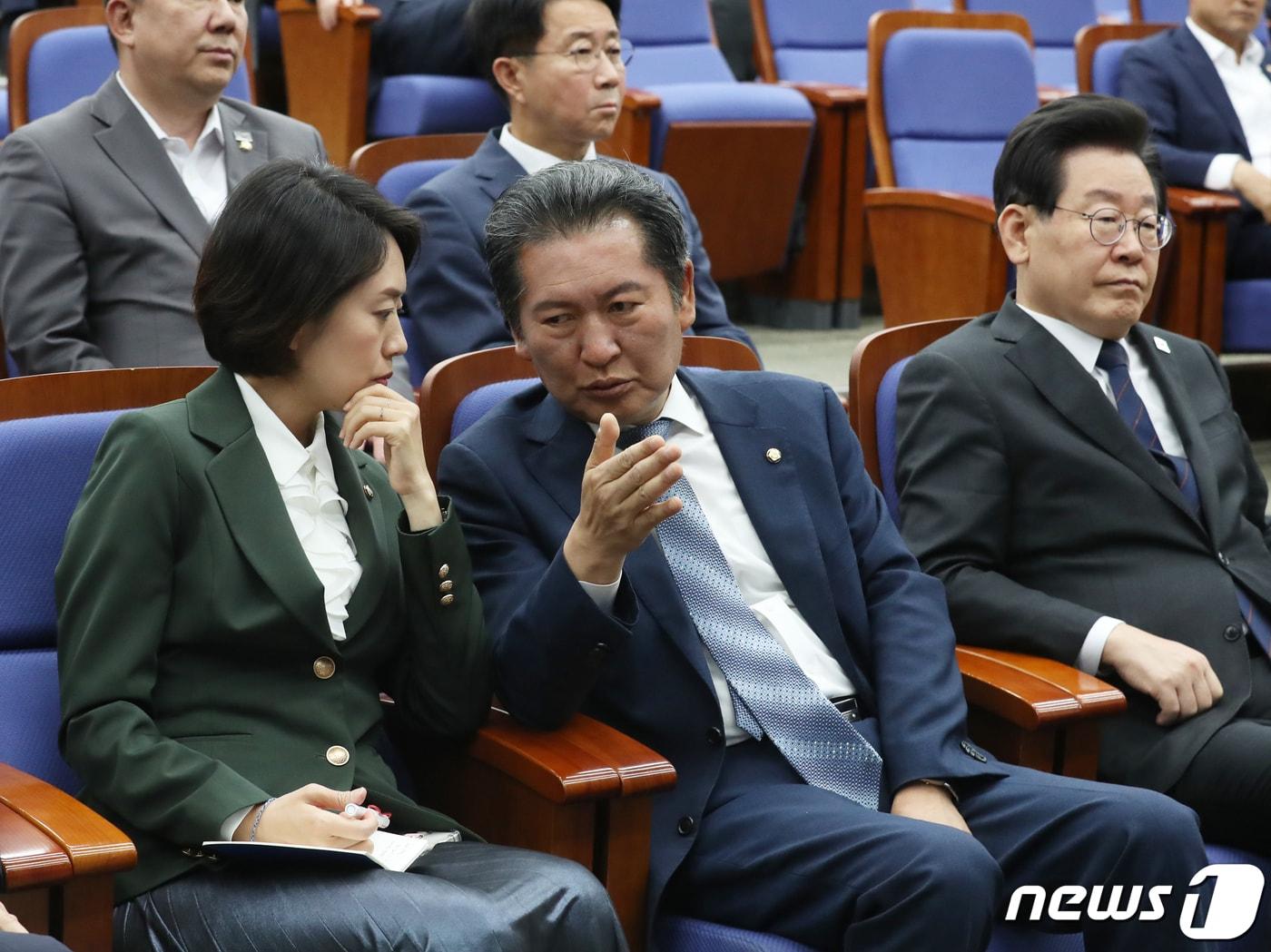 더불어민주당 정청래, 고민정 최고위원이 지난 5월 25일 서울 여의도 국회에서 열린 의원총회에서 대화를 하고 있다. 오른쪽은 이재명 대표. ⓒ News1 송원영 기자관련 키워드고민정민형배정청래이재명체포동의안표결전원퇴장이재명약속뒤집기뱉은말주워담자박태훈 선임기자 박선원 "총기위협 지시 尹, 고작 징역 5년?…정경심은 딸 표창장 한장에 4년"정성호 "필버 24시간 대기만 벌써 4번째, 신기록…노자 도덕경 읽으며 밤샘"
