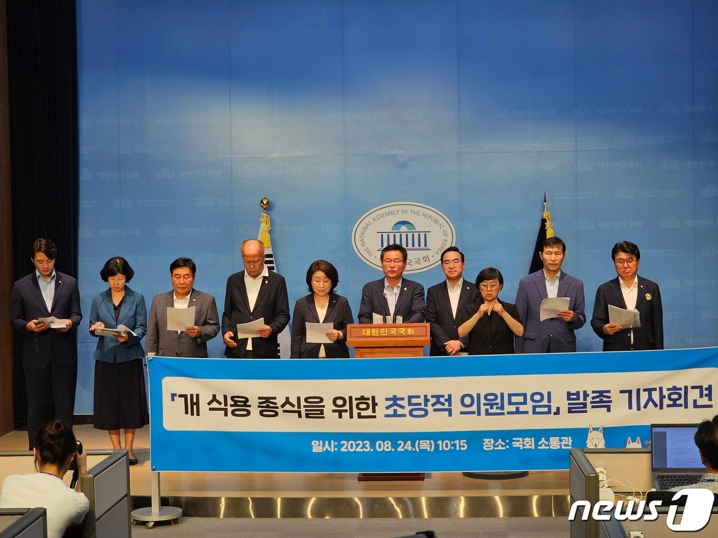개식용 종식 위한 초당적 의원모임 발족…44명 참여김건희 여사 개식용 종식 언급…"역대 어느 정부보다 관심 높아"여야 국회의원 44인으로 구성된 '개 식용 종식을 위한 초당적 의원모임'이 24일 국회 소통관에서 기자회견을 하고 있다. 관련 키워드개식용객고기개식용 종식국민의힘국힘더불어민주당민주당김건희박기범 기자 우주경제 1조 달러 눈앞인데…韓 우주항공 수출 '걸음마' 수준대한항공·아시아나항공, 임직원 가족과 '자녀 안전체험' 행사 진행