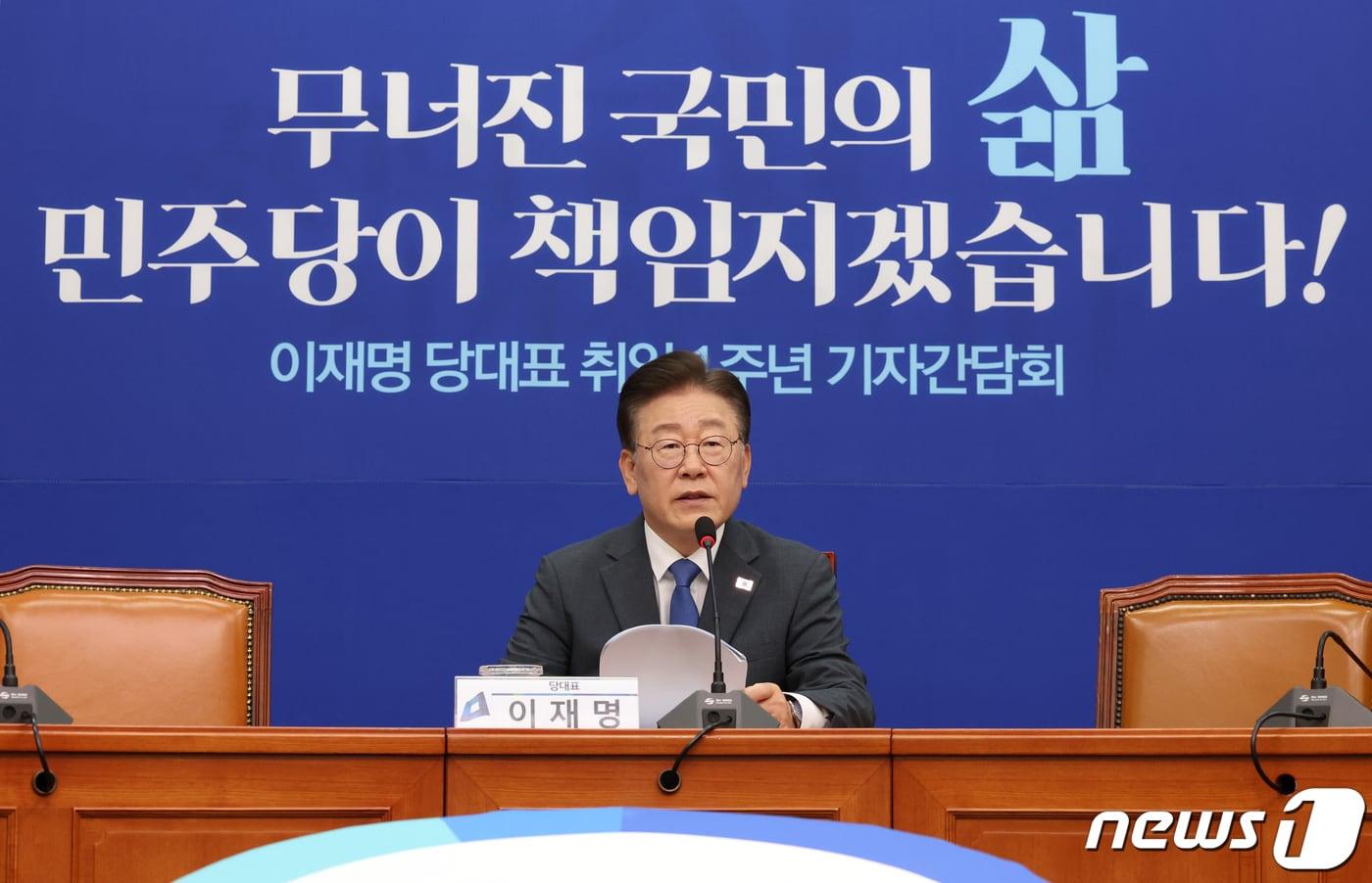 "핵 오염수 방류 반대 천명, 국정쇄신·개각 단행하라""단 하나의 증거 없다, 사법 스토킹…총선, 한 석이라도 이겨야"이재명 더불어민주당 대표가 31일 서울 여의도 국회에서 당대표 취임 1주년 기자간담회를 하고 있다. 2023.8.31/뉴스1 ⓒ News1 송원영 기자31일 서울 여의도 국회 앞에 당 대표 취임 1주년을 맞이한 이재명 더불어민주당 대표를 응원하는 간판과 화환이 놓여 있다. 2023.8.31/뉴스1 ⓒ News1 송원영 기자관련 키워드이재명사법리스크취임 1주년압수수색무기한 단식정재민 기자 대법, 장예찬 '여론조사 왜곡 공표' 유죄 취지 파기환송천대엽 "사법부 불신 깊이 사과…사법부, 개혁 대상 아닌 동반자로 참여"박종홍 기자 현대차 아반떼, 한국 차 최초 美 판매량 400만대 돌파…출시 24년만오토노머스에이투지, 가이드하우스 선정 '자율주행 리더보드' 7위관련 기사'계엄 사과' 소장파 요구 커지는데…장동혁 고심 배경엔 '秋 영장'