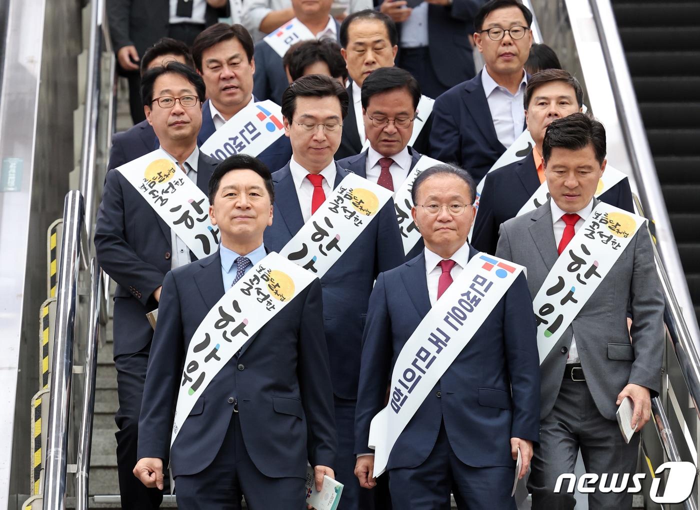 윤재옥 주재 원내대책회의도…"연휴 끝나고 전열 가다듬는 차원"국민의힘 김기현 대표와 윤재옥 원내대표 등 의원들이 27일 오후 서울 용산구 서울역에서 시민들에게 추석 귀성 인사를 위해 이동하고 있다. 2023.9.27/뉴스1 ⓒ News1 황기선 기자관련 키워드국민의힘박대출김기현윤재옥한상희 기자 장예찬, 尹사형 구형에 "윤어게인 아니지만 최소한의 의리 지킬 것"국힘 상임고문단 "한동훈 징계 밀어붙이면 당 쪼개지고 선거 망쳐"관련 기사"징벌적 손해배상 필요" 김기현·김장겸, '사이버렉카' 대응 토론회박찬대 "내란방패 국힘 45명 제명 촉구…안되면 정당해산 신청"(종합)박찬대 "尹 내란방패 국힘 의원 45명 제명촉구 결의안 발의"김용태 거취·개혁안 논의 유예…국민의힘 원내대표 선거에 쏠리는 눈국힘, '李 파기환송심' 중지에 검찰 항고 촉구…순차적 법적 대응