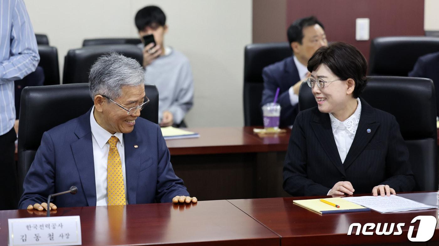 "원가보상률 78% 수준…경영개선 열심히 노력 중"김동철 한국전력 사장(왼쪽)과 최연혜 한국가스공사 사장이 지난달 12일 오전 서울 종로구 한국무역보험공사 대회의실에서 열린 에너지공기업 경영혁신 점검회의에서 대화하고 있다. 2023.10.12/뉴스1 ⓒ News1 김성진 기자관련 키워드국정감사최연혜가스공사심언기 기자 [속보] 靑, 尹 체포방해 1심 징역 5년에 "법과 원칙따라 진행될 것"[속보] 李대통령, 21일 신년 기자회견…영빈관서 90분간 진행관련 기사농해수위, '해경 순직' 인천해양경찰서장 등 국감 증인 채택한전·한수원·가스공사 사장 줄줄이 미국행…'한·미 에너지 협력' 논의