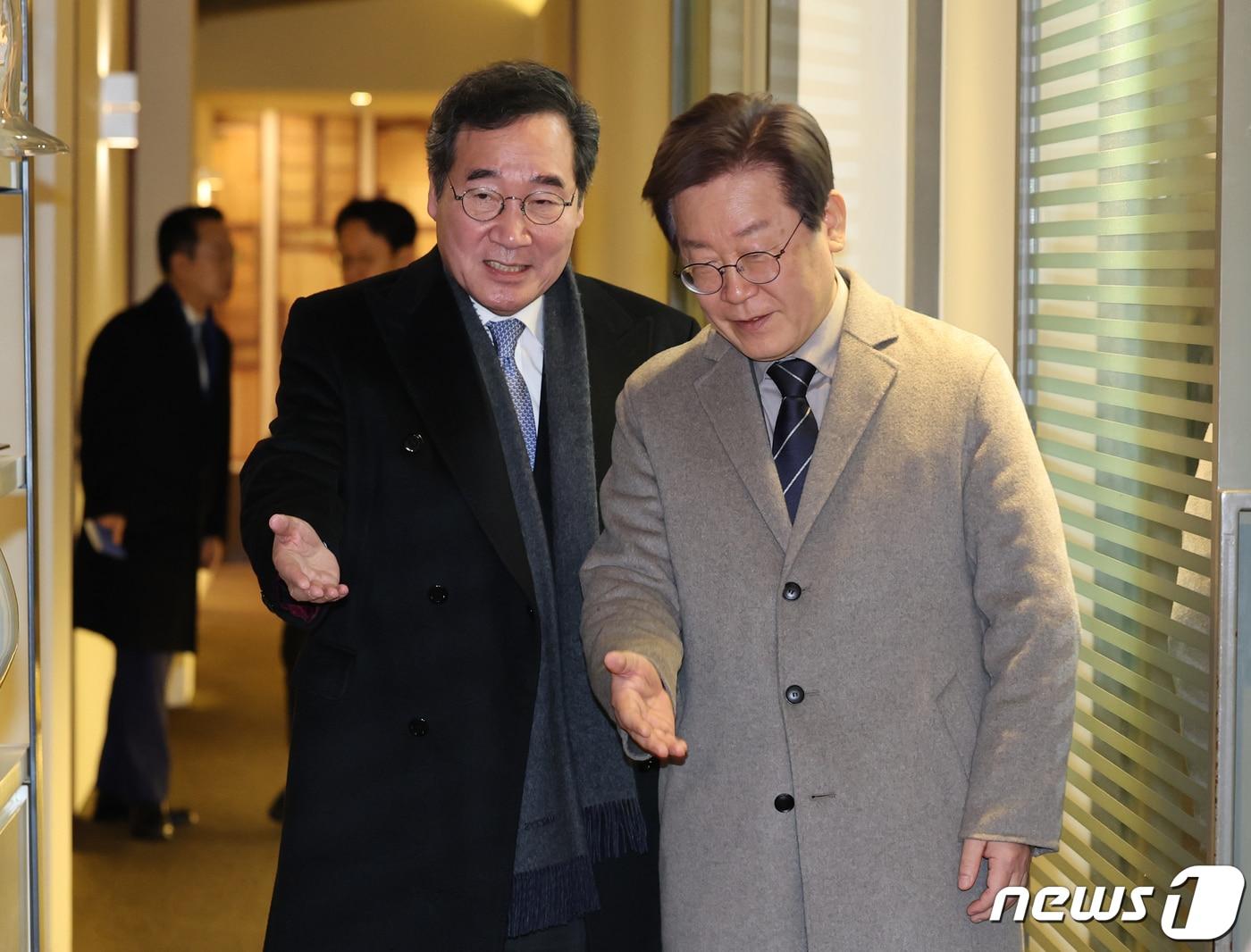 이재명 더불어민주당 대표(오른쪽)와 이낙연 전 국무총리가 지난해 12월 30일 서울 종로구의 한 음식점에서 회동을 마치고 이동하고 있다. (공동취재) 2023.12.30/뉴스1 ⓒ News1 김진환 기자관련 키워드이낙연새로운미래이재명사퇴안할것비명의원접촉대거합류가능성상식있다면일이이렇게박태훈 선임기자 신동욱, 마지막 해법이라며 한동훈에 '최고위 공개검증' 제안천하람 "이혜훈 도덕성마저 처참, 2016년엔 '동료 의원 낙선 기도' 요청까지"