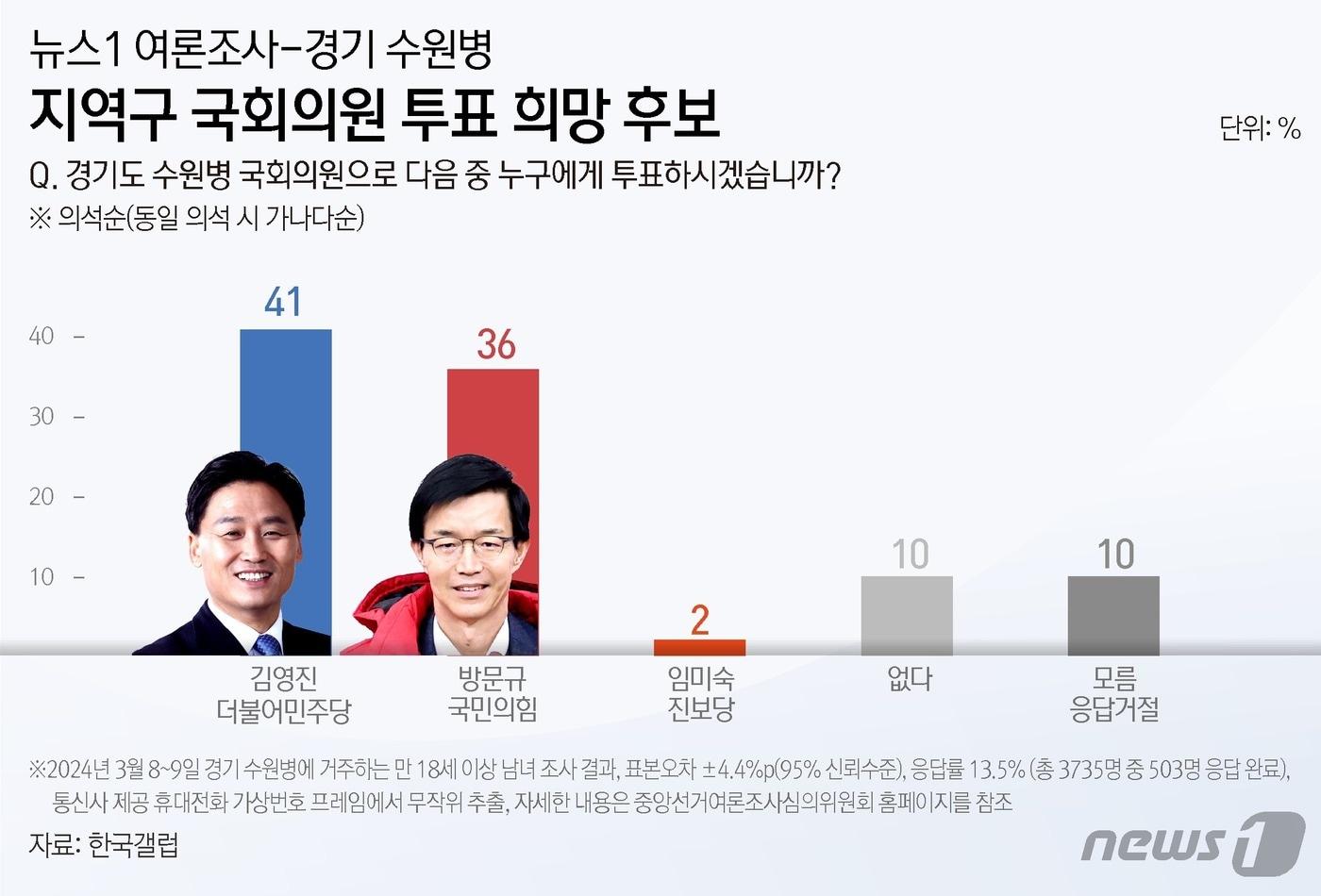 편집자주 ...뉴스1은 오는 4월 10일 제22대 국회의원 선거를 앞두고 여야가 치열하게 맞붙는 주요 선거구별 여론조사를 실시합니다. 첫번째 지역으로 인천 계양을에 대한 조사 결과를 8일 보도한데 이어 서울 마포을과 광진을을 10일, 경기 수원병과 부산 북갑을 11일 보도합니다. 이후 수도권을 비롯한 전국의 주요 격전지를 차례로 보도할 계획입니다