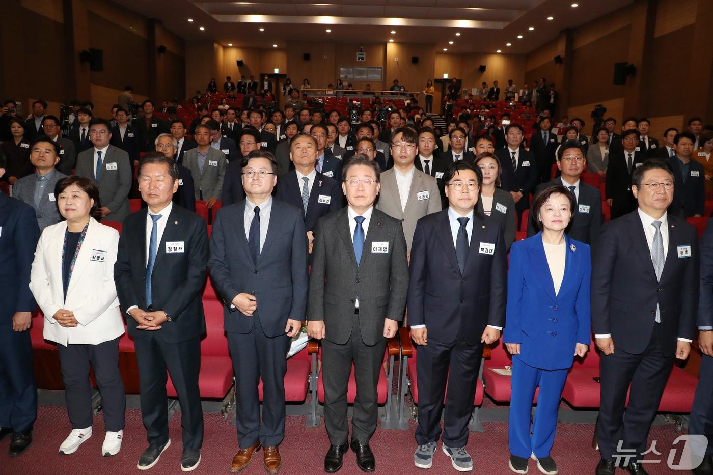 당직자·원내대표 친명 일색…국회의장도 '명심' 쟁탈전"다양한 목소리 못내" 우려속 "총선 민심" 앞세워 강공이재명 더불어민주당 대표와 박찬대 신임원내대표를 비롯한 제22대 국회의원 당선인들이 3일 국회 의원회관에서 열린 당선인 총회에서 채상병 특검법 즉각 수용 촉구 결의문을 채택 하고 있다. (공동취재)/뉴스1 ⓒ News1 임세영 기자관련 키워드이재명민주당박찬대추미애25만원민생회복지원금거부권정재민 기자 대법, 장예찬 '여론조사 왜곡 공표' 유죄 취지 파기환송천대엽 "사법부 불신 깊이 사과…사법부, 개혁 대상 아닌 동반자로 참여"관련 기사與 원내대표 보선 최소 3파전…진성준·박정·한병도 출마(종합)與 원내대표 보선 최소 3파전…진성준·박정·한병도 출마김민석·정청래, 왜 '경쟁적' 호남행?…"지선 승리 우선인데 텃밭만 챙겨"'친명 vs 친청' 막 오른 與 최고위원 보궐선거…15~17일 후보 등록김관영 전북지사 재선 도전 맞설 3인…이원택·안호영·정헌율 출사표