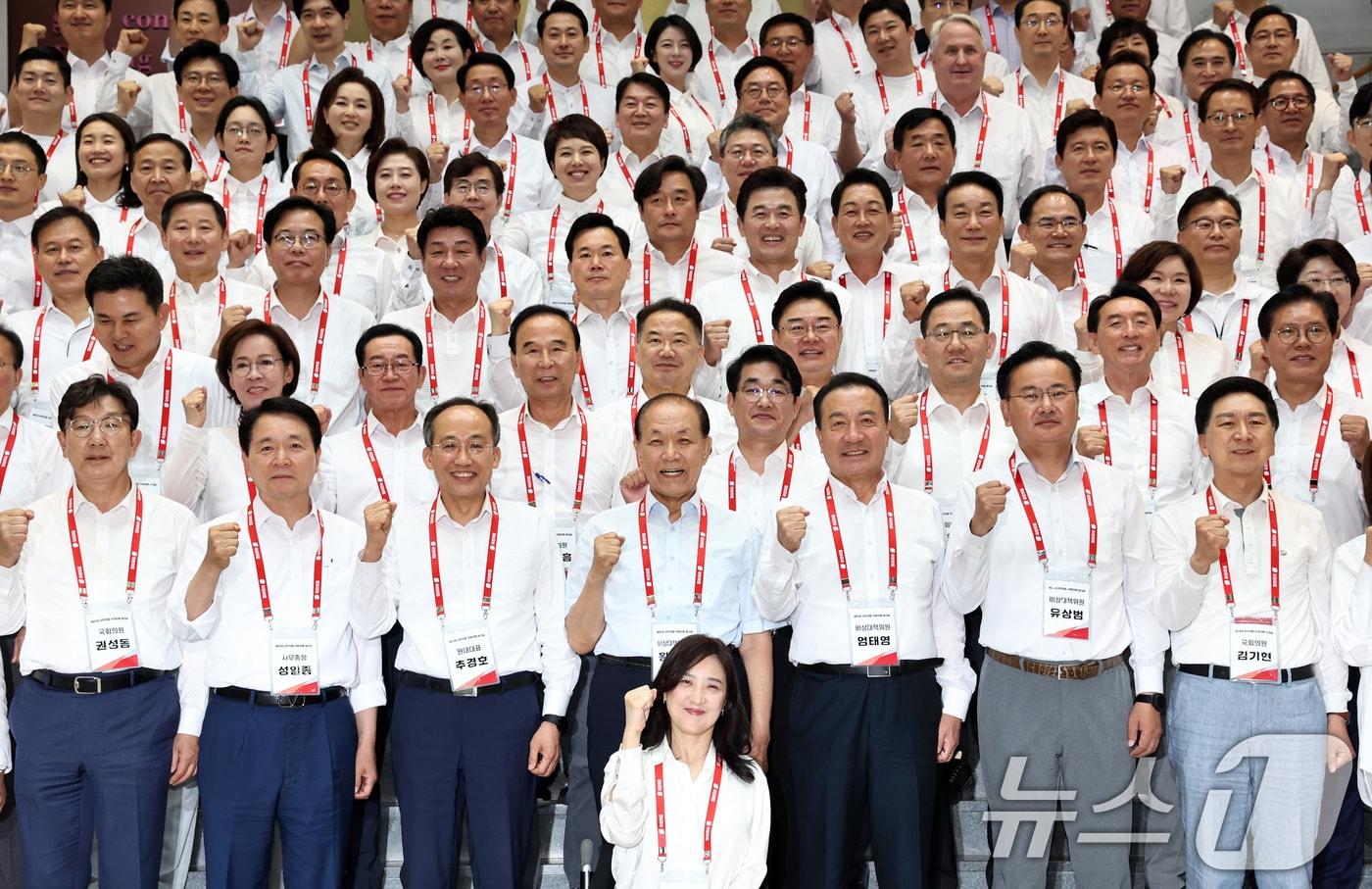 충남 천안서 당선인 워크숍 열고 "뭉치는 당" 강조인명진, 이해찬에 "살았는지 죽었는지 모르겠더라"국민의힘 황우여 비상대책위원장과 추경호 원내대표 등 의원들이 30일 오후 충남 천안 재능교육연수원에서 열린 국민의힘 제22대 국회의원 워크숍에서 기념촬영을 하고 있다. 2024.5.30/뉴스1 ⓒ News1 구윤성 기자관련 키워드국민의힘민주당한동훈윤석열김건희이재명인명진한상희 기자 배현진, 장동혁 단식 중단 촉구 "韓 제명 사태 수습하고 당 총력 모아야"천하람 18시간 56분 만에 필리버스터 종료…청와대 오찬 참석이비슬 기자 재수감 성범죄자 신상정보 공개기간 연장…법 개정 추진서울시, 2026 서울국제정원박람회 '작가정원' 5개 확정관련 기사장동혁, '쌍특검' 단식 사흘째…"법치 지키기 위해 목숨 바칠 각오"배현진, 장동혁 단식 중단 촉구 "韓 제명 사태 수습하고 당 총력 모아야"60·70대도 등 돌렸다…국힘, 민주당 '대형악재'에도 지지율 하락장동혁, 내전 중 쌍특검 단식 이틀차…친한계 "국면전환용"정청래, 장동혁 단식에 "밥 안 먹으면 배고파"…與, 한목소리 비판
