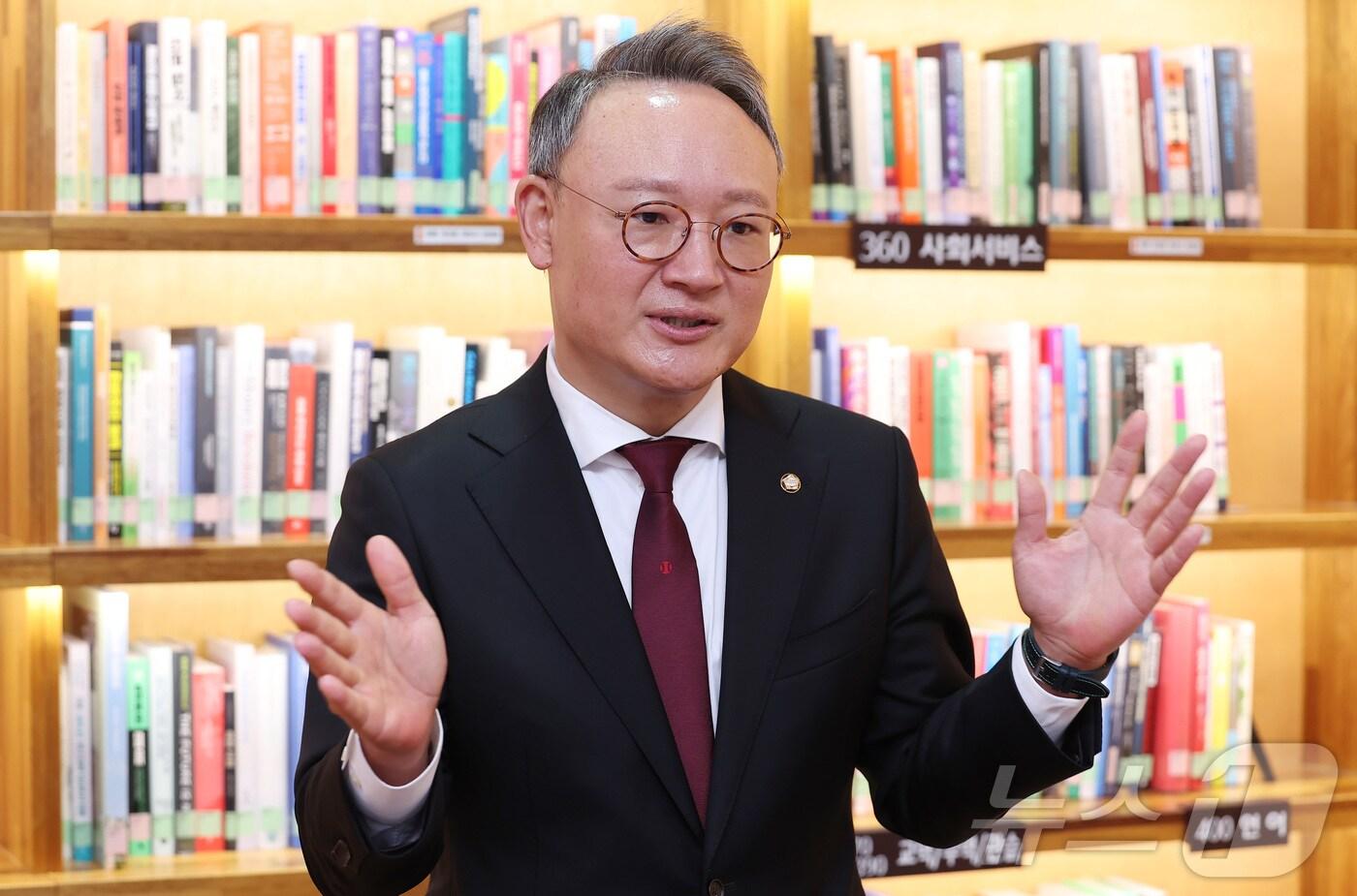 "지속가능한 복지국가로 가야…현금복지보단 서비스복지로""한동훈은 고교·대학 후배…진짜 리더, 깨지고 맞고 가는 것"안상훈 국민의힘 의원이 3일 서울 여의도 국회에서 뉴스1과 인터뷰를 하고 있다. 2024.6.3/뉴스1 ⓒ News1 김민지 기자안상훈 국민의힘 의원이 3일 서울 여의도 국회에서 뉴스1과 인터뷰를 하고 있다. 2024.6.3/뉴스1 ⓒ News1 김민지 기자안상훈 국민의힘 의원이 3일 서울 여의도 국회에서 뉴스1과 인터뷰를 하고 있다. 2024.6.3/뉴스1 ⓒ News1 김민지 기자한상희 기자 천하람 18시간 56분 만에 필리버스터 종료…청와대 오찬 참석송언석 "여야 단독 영수회담 제안…한가한 오찬쇼 할 때 아냐'
