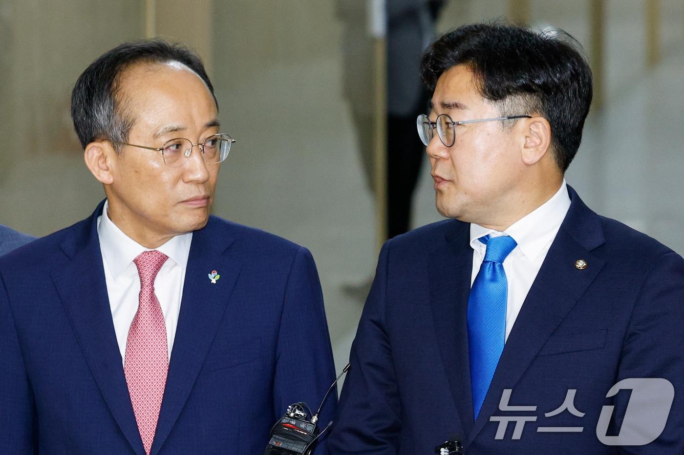 민주, 10일 11개 상임위 의결 계획…대응방향 모색하는 '국힘'여야, 22대 국회 초반부터 극심한 대치 정국의 길 선택 가능성추경호 국민의힘 원내대표(왼쪽)와 박찬대 더불어민주당 원내대표가 5일 오전 서울 여의도 국회에서 원 구성 협상을 위한 회동 결과 합의 불발을 알리고 있다. 2024.6.5/뉴스1 ⓒ News1 안은나 기자관련 키워드원구성국민의힘국힘더불어민주당민주당법사위운영위과방위박기범 기자 우주경제 1조 달러 눈앞인데…韓 우주항공 수출 '걸음마' 수준대한항공·아시아나항공, 임직원 가족과 '자녀 안전체험' 행사 진행관련 기사국힘·조국당, 신임 한병도 원대에 '與 공천 헌금 진상규명' 요구(종합)6·3지선 선거구 획정 본격화…여야 정개특위 구성 완료지선 향한 '장동혁표 쇄신' 돌입…국힘 당명 개정 여론조사"도대체 누구 작품"…'통진당 지지·JMS 변호' 국힘 윤리위 '논란'국힘 윤리위원 2명, 임명 하루 만에 사퇴…"추가 인선 검토"