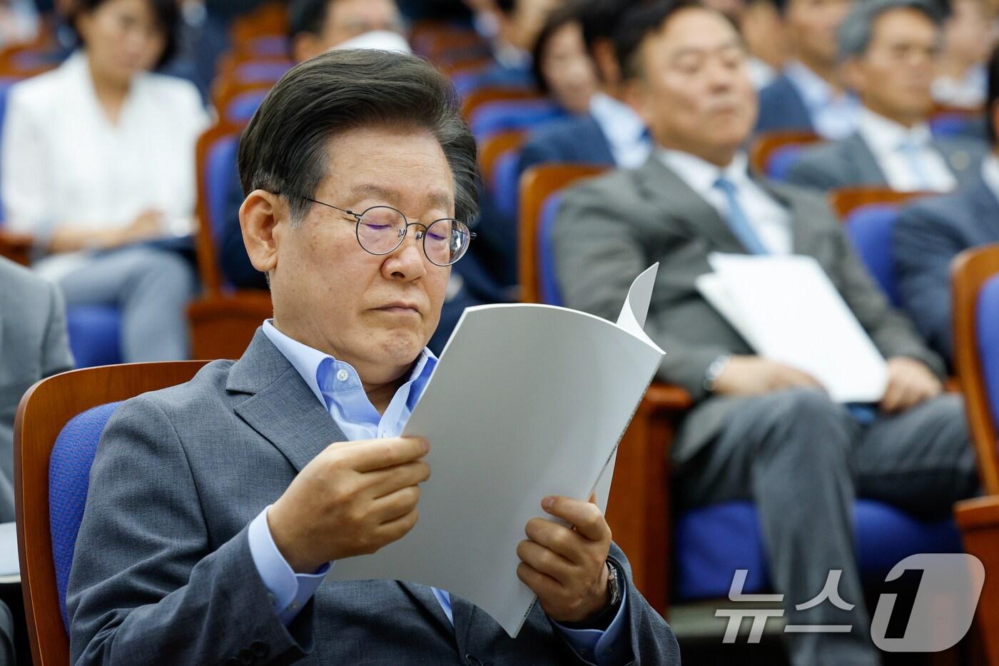 21일 사퇴설…한동훈 전당대회 출마설과 함께 급부상당헌 개정해 2026년 지방선거 공천권 행사 뒤 사퇴가능이재명 더불어민주당 대표가 20일 오후 서울 여의도 국회에서 열린 긴급 의원총회에 참석해 당론 법안 자료를 살펴보고 있다. 2024.6.20/뉴스1 ⓒ News1 안은나 기자구진욱 기자 추울 땐 실내로! 올겨울 꼭 가야 할 무료 전시 7곳[서울in]서울 지하철 3호선 오금역 선로 연기…조치 완료 후 운행 재개